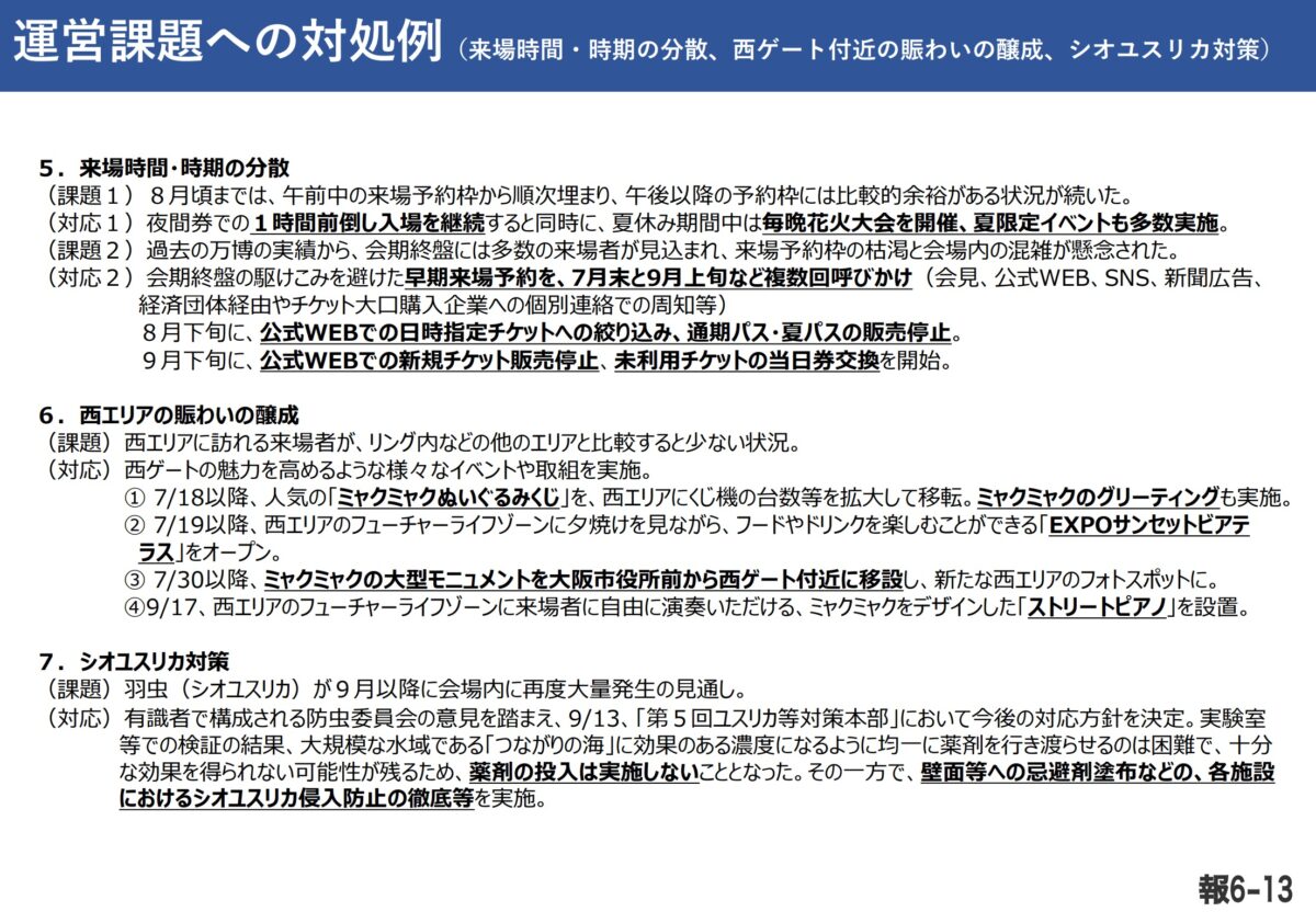 〇また、大屋根リング上の植栽帯(フェンスの外側の人が近づけない場所)に、忌避剤を来場者が退場後の夜間に2回散布しております。